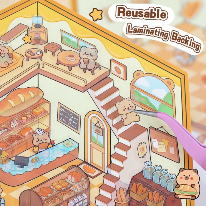 [High Quality] Cute 3D Sticker Scenes crafted from high-quality paper, our DIY 3D house stickers are not only durable but also safe and non-toxic. The high clear sticker scenes pattern provides a stunning stereoscopic effect, while the coated surface ensures they won’t easily tear.