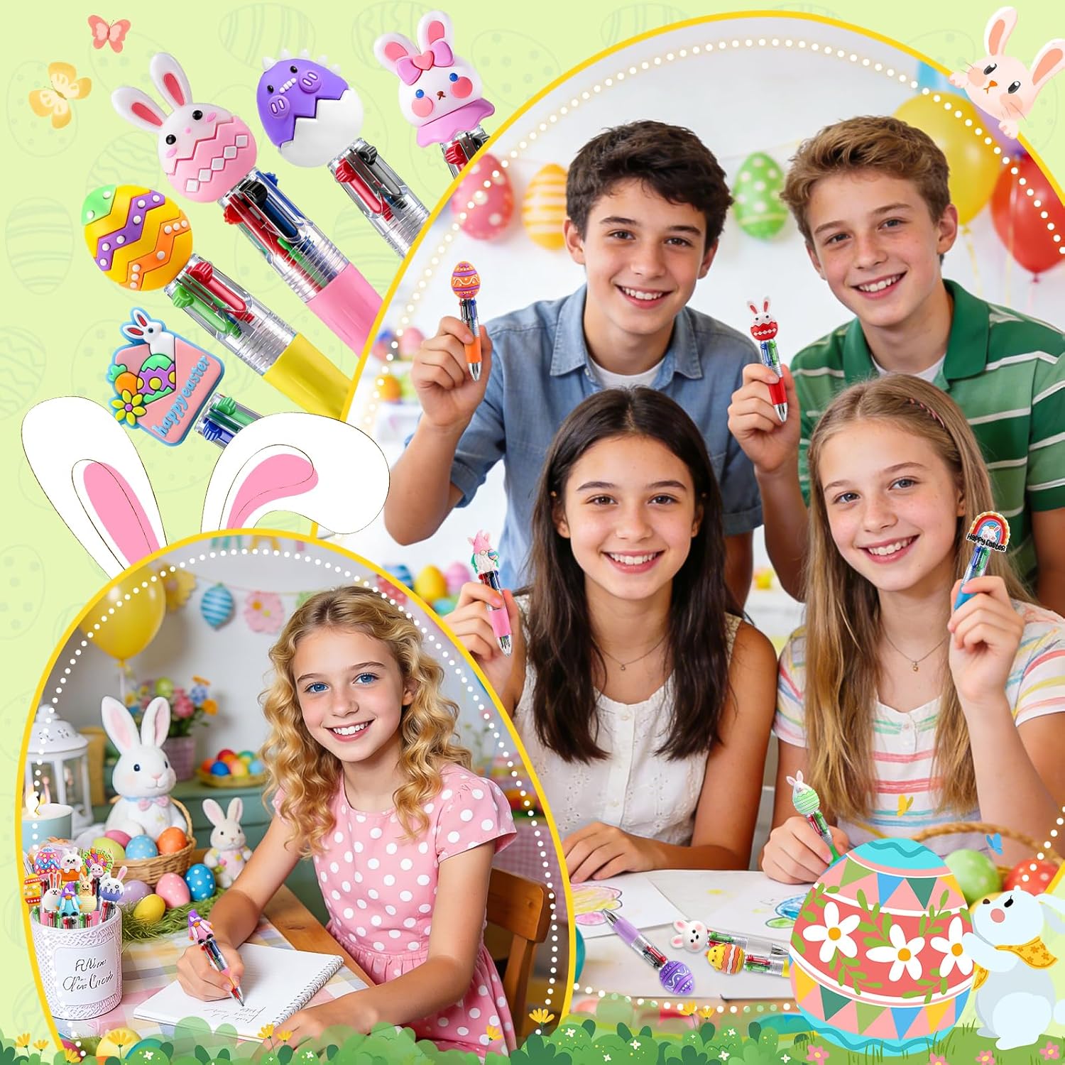 【Efficient and Suitable】These cute and creative easter multicolor ballpoint pens are slightly shorter and designed for younger users. Their cute and compact design makes it especially suitable for young users, ensuring a comfortable grip for small hands.
