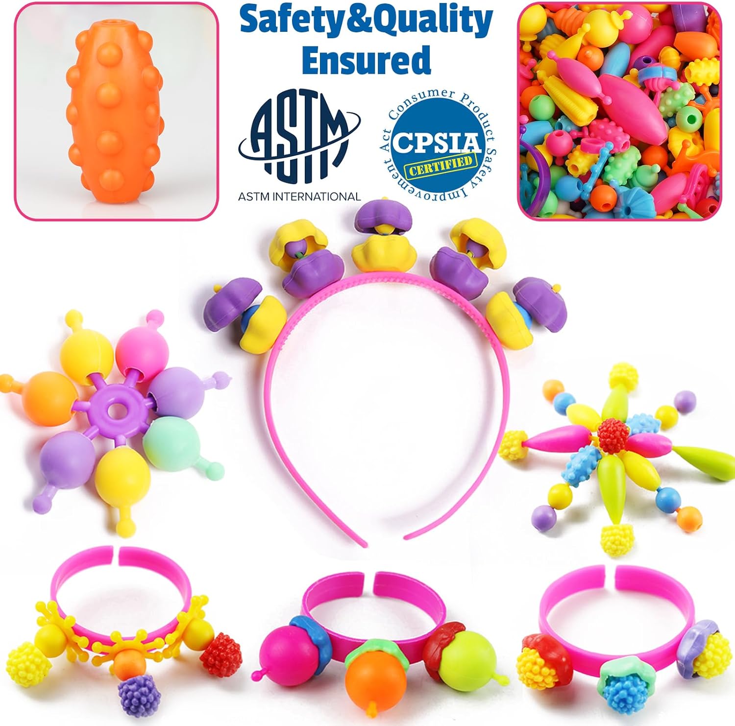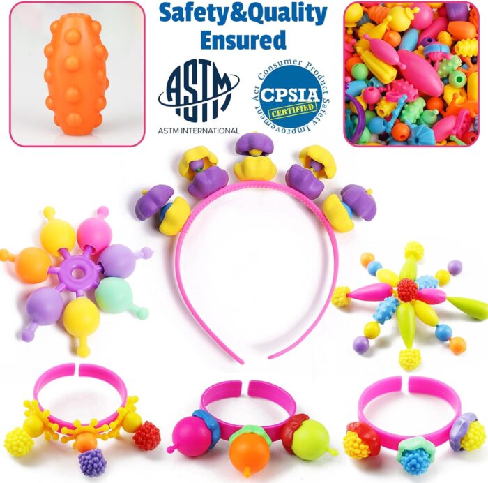 【Develop Fine Motor & Exercise Finger Flexibility and Hand Strength】 Pop beads are great for strengthening hand and finger muscles for kids. The motion of assembling and disassembling the beads enhances finger flexibility and hand-eye coordination. Each jewelry making beads is easy enough for kids age 3 4 5 6 7 8 to connect and take apart by herself with no help and avoid getting frustrated.