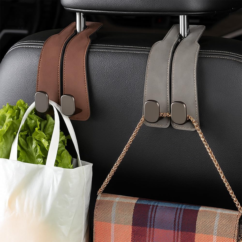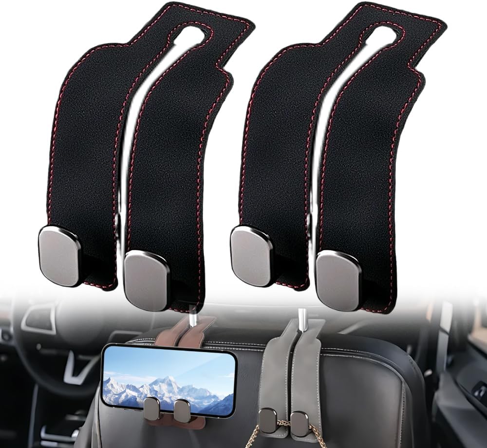 Headrest Hooks for Car Car Seat Hooks for Headrest, 2026 Hooks for Purses and Bags Cute Car Purse Holder,Twinhook Leather Headrests Hangers Seat Back Organizers (Black-2pcs)