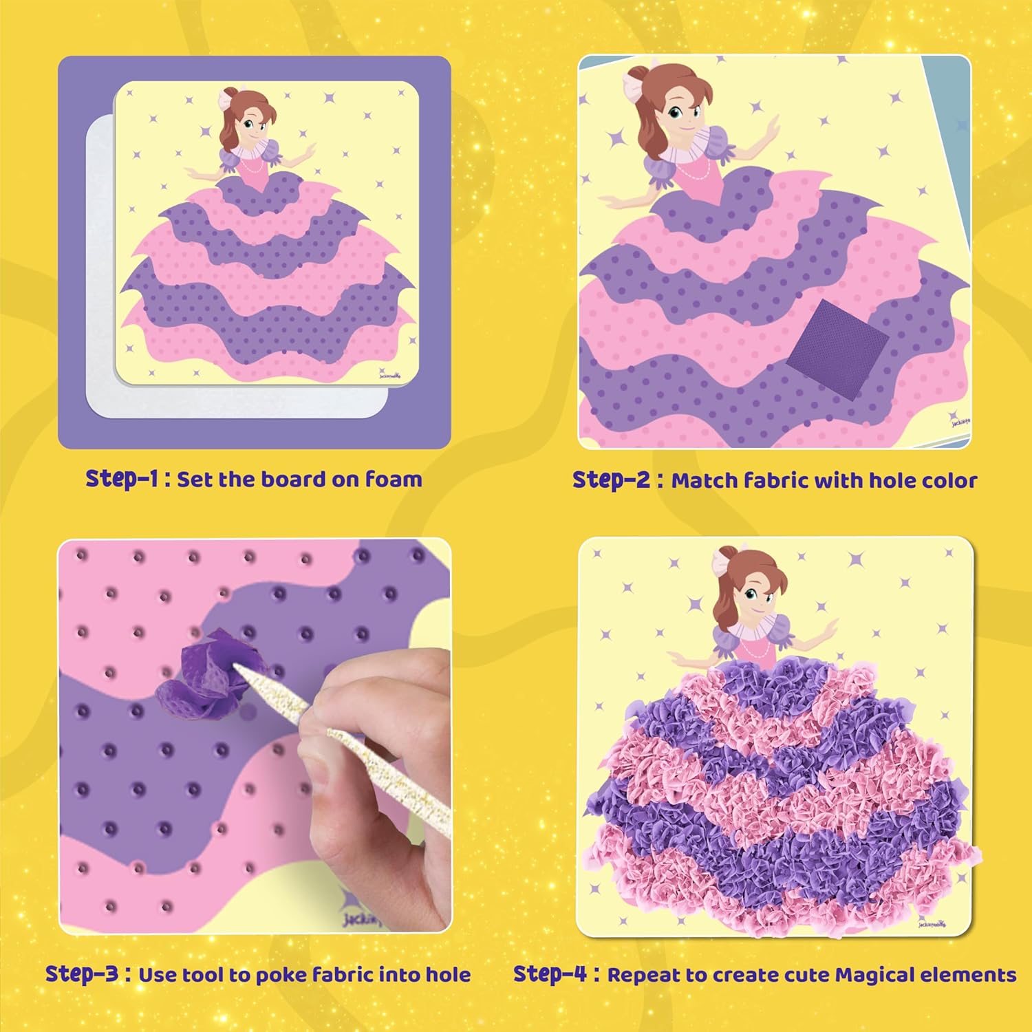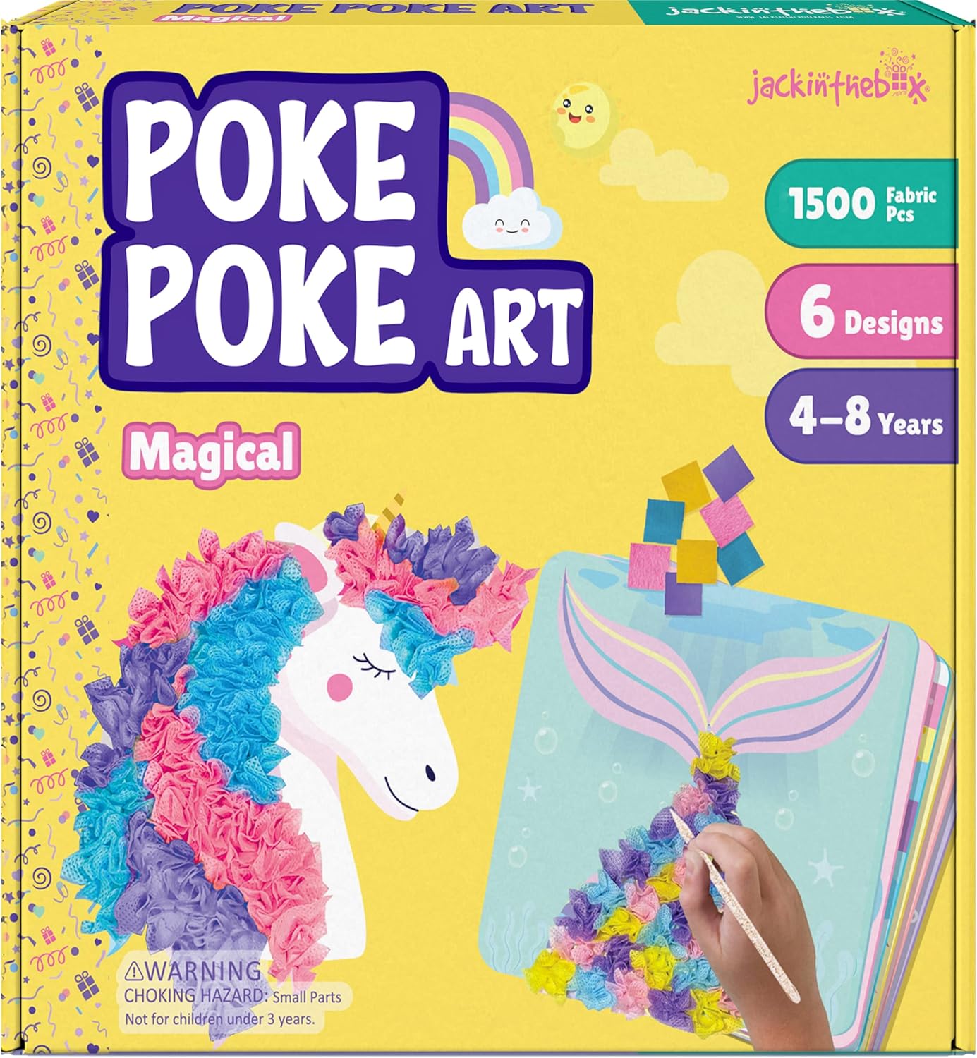 DOUBLE THE POKES, DOUBLE THE FUN: Includes 1500+ fabric squares, 6 foam boards with magical objects, 2 poke-in sticks, a poke-in pad, and an instruction manual, providing everything needed for a fun and complete craft experience.