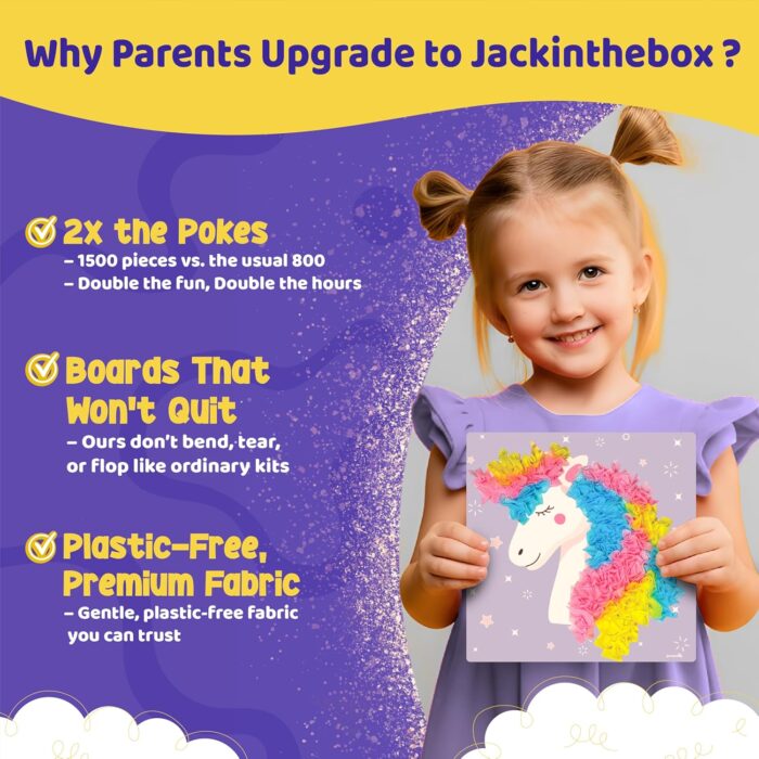 jackinthebox Poke Poke Art – Magical Theme, Mess-Free Fabric Art and Craft, Flower Pressing Kits, Gift for Kids, Girl Gifts, DIY Activity Boy Gift, Easter Gift for Girls and Boys Ages 4 5 6 7 8