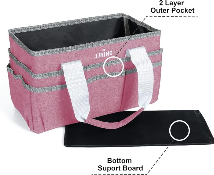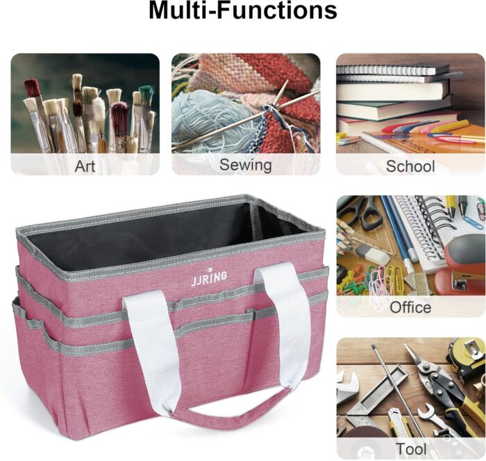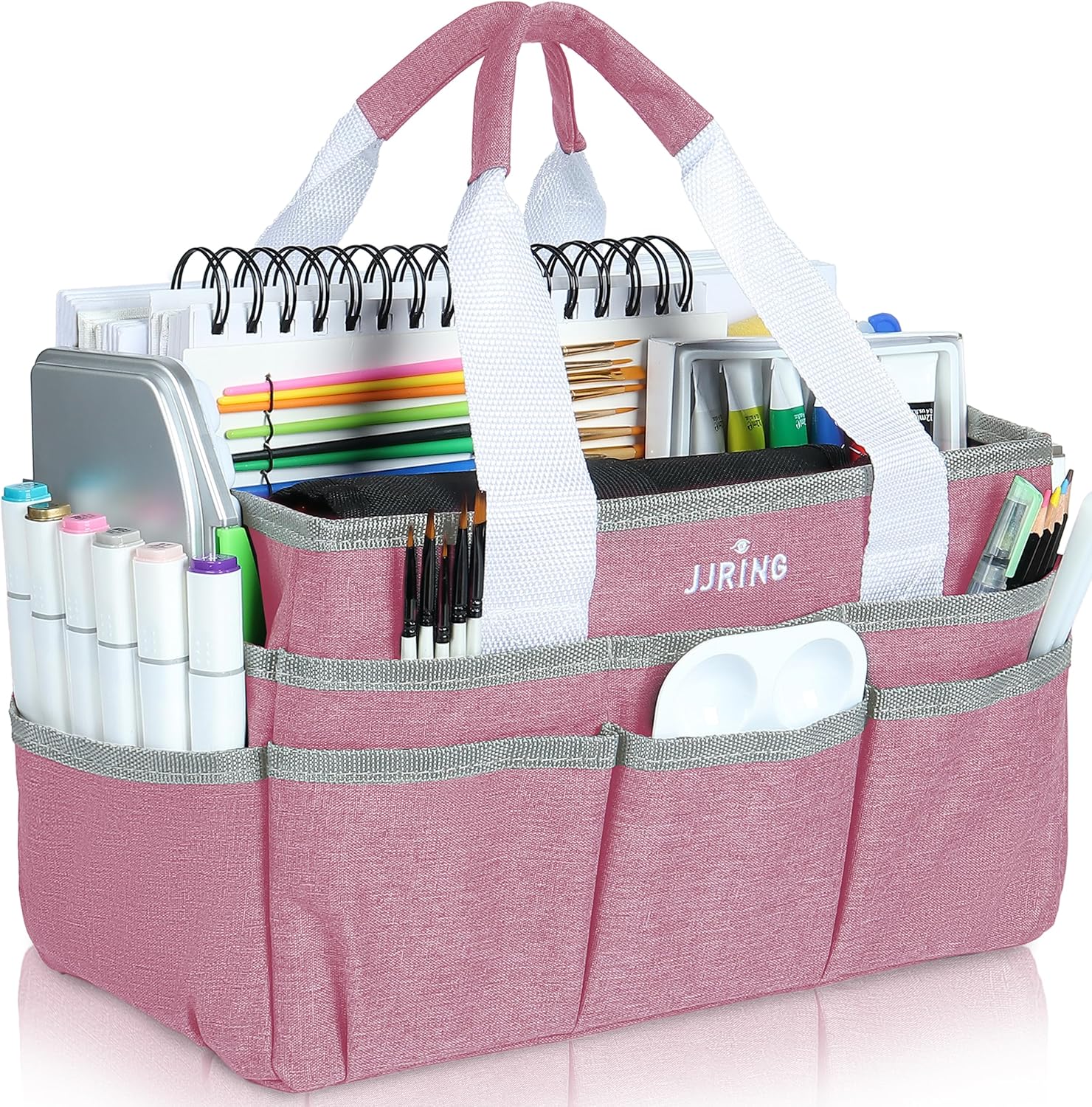 JJRING Craft Organizer Tote Bag, Art Storage Caddy with Multiple Pockets, Pink Sewing Bag for Art, Craft, Scrapbooking, School, Medical, and Office Supplies Storage