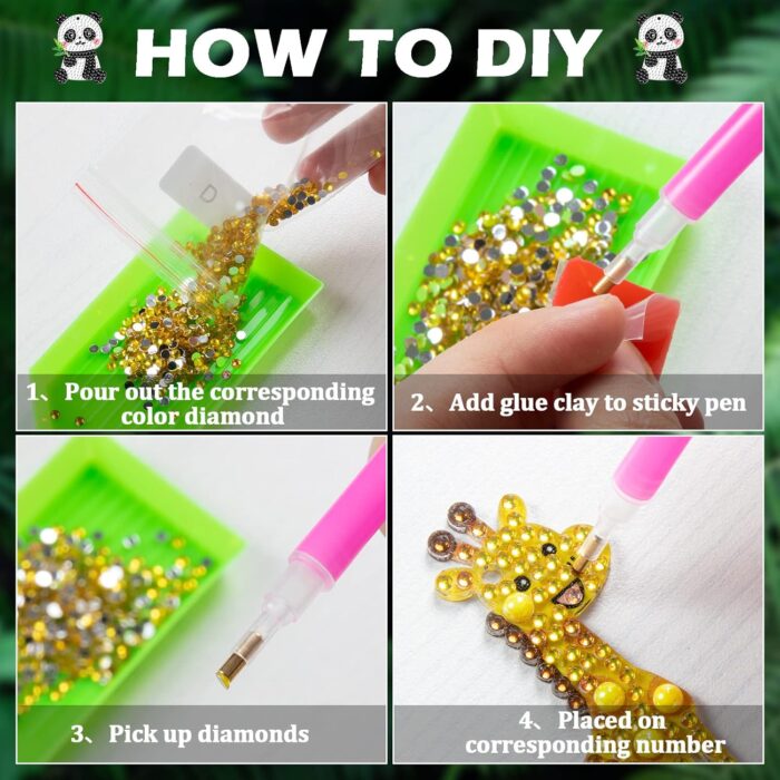 🎈EASY TO MAKE – First, peel off the transparent protective film of the cartoon sticker canvas. Then, dip enough clay into the viscous pen and use the pen to grasp the front of the diamond. Finally, bring the diamond to the corresponding number. There are letters/numbers/symbols on each diamond bag.CHOKING HAZARD-Small parts. Not for children under 3 years.