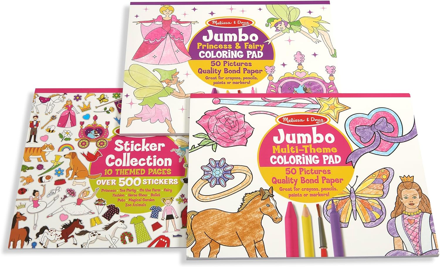 This pink-and-purple assortment features three 11″ x 14″ activity pads for countless hours of fun