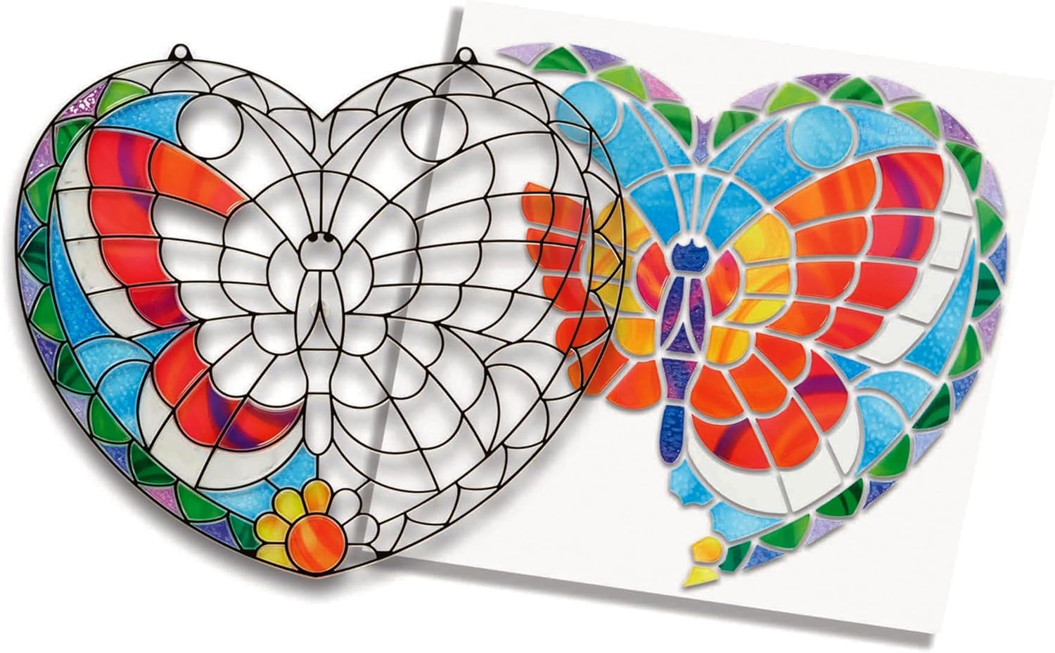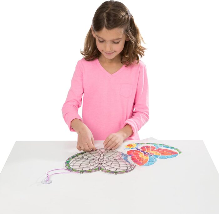 Our crafts for children create a beautiful display in any location. The brilliance of these stained glass art projects is enhanced when they are hung in a sunny window so the stained-glass butterfly can shimmer and glow. The Butterfly Stained Glass Made Easy Activity Kit makes a great gift for kids ages 5 and up. Add any of the Melissa & Doug Stained Glass Made Easy kits to round out the hands-on, screen-free fun.
