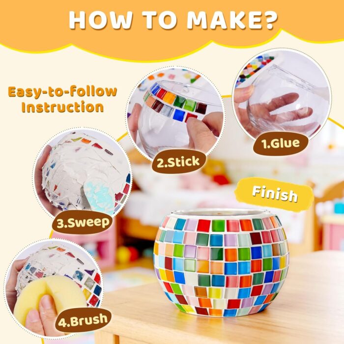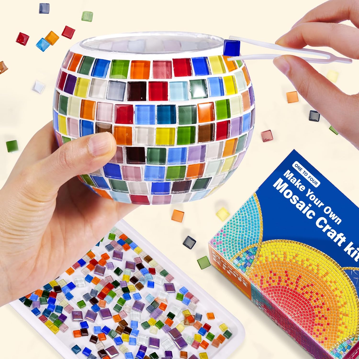 ONE TO FOUR Kids Craft Kit Mosaic Stained Glass Candle Holder – DIY Arts and Crafts for Kids Ages 8-12 & Adults, Turkish Night Light Making Kit, Ideal Home Decor Gift for Birthdays, Easter