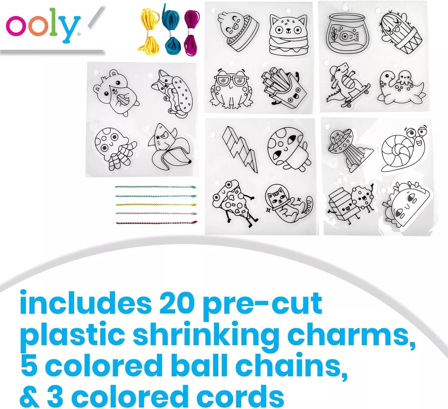 Ooly 28 PC DIY Shrinking Art Kit for Kids, 20 Plastic Pre Cut Charms and More, No Mess Creative Activity Jewelry Making Kit – Fun Friends