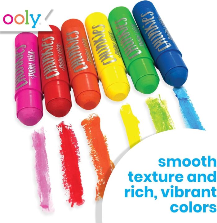 Ooly Chunkies Paint Sticks deliver rich coverage and adhere well, making them perfect for endless creative projects. They work on construction paper, sketch pads, poster board, cardboard, wood, canvas, and more.