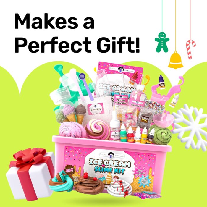 Creative Hands-On Fun: This ice cream slime kit for girls 8-12 delivers imaginative play with colorful textures and sweet-inspired creations. A thoughtful gift for girls, it lets kids design unique girl slimes with scents, mix-ins, and decorations