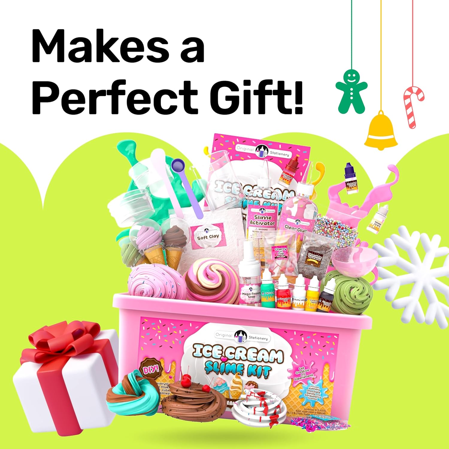 Original Stationery Ice Cream Slime Kit for Girls Toys, DIY Cherry-Scented Slime Making Set with 31 Pieces, Fun Arts and Crafts for Kids Ages 8-12, Easter and Birthday Gift
