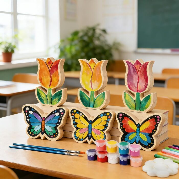 Complete DIY Painting Kit: Everything You Need to Create and Decorate! This all-in-one wood cutouts for crafts package includes everything to spark your creativity. You’ll receive 3 tulip and 3 butterfly shapes, unfinished wood cutouts ready for your imagination. Whether you’re a beginner or a pro, you have everything needed to start painting your farmhouse shelf sitter masterpieces immediately.