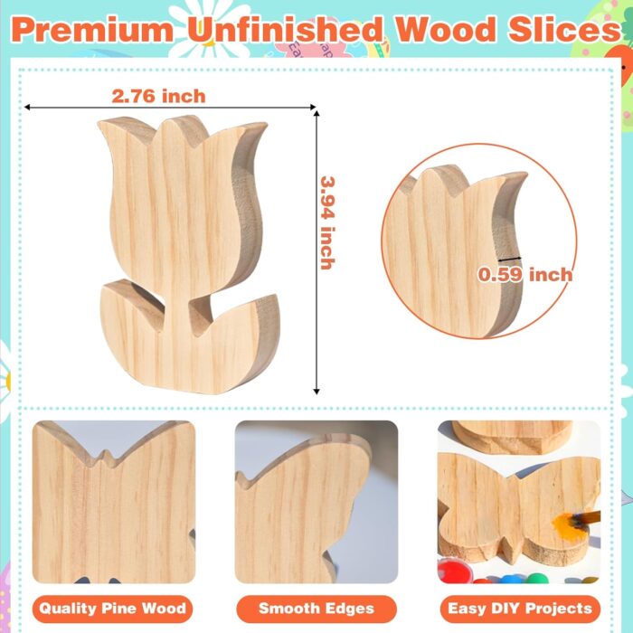 Premium Wood Slices for Effortless Painting: Crafted from premium natural wood, each butterfly wood cutout and tulip wood shape features a smoothly sanded surface for effortless painting. The 4-inch size is substantial enough to showcase intricate details yet compact for tabletop decorations, Easter basket stuffers, or spring party favors.