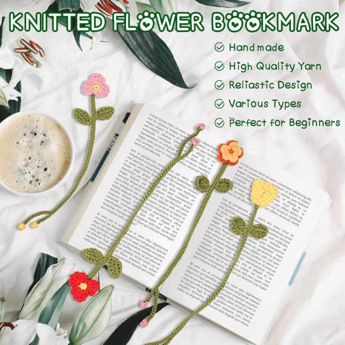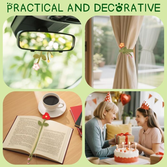 Multi-functional Flower Crochet Kit for Starters: Transform your crochet creations into small charming flower companions that can grace the pages of your favorite books. These mini whimsical floral bookmarks not only bring literary enchantment but also protect your pages from the ravages of time and eager page-turning fingers. Also could be your home decorations.