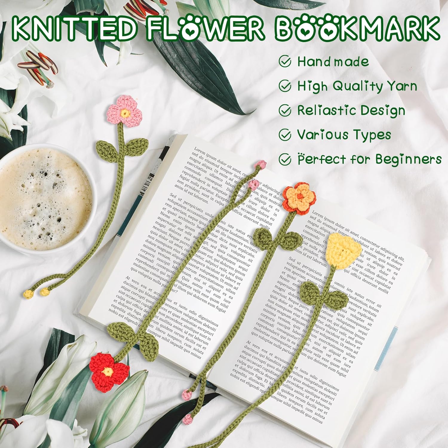 All-In-One Crochet Starter Kit: The WaldyWop Beginner Crochet Kit for Adults and Women comes with all the essential supplies and accessories you need to begin your creative plant-themed DIY craft projects—including 8 colorful yarns, 1 yarn needle, 6 stitch markers, 1 ergonomic crochet hook, and a step-by-step instruction manual with easy flower bookmark patterns. With our all-inclusive easy crochet kit for beginngers, you’ll craft cool flower bookmarks that bloom with your unique style.