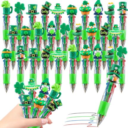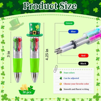 CZWZ 30Pcs Mini Multicolor Pens in One 4-in-1 Cute Pens Bulk, Ballpoint Pen for Birthdays and Parties, Fun Gifts Assorted Ink Kawaii Pen(St Patricks Day)