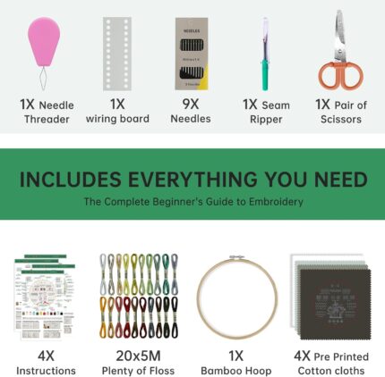 CYANFOUR Embroidery Kit for Beginners, 4 Stages to Learn 38 Stitches, with Step-by-Step Instructions and Clear Videos, Includes Multiple Accessories, Gift for Craft Lovers.
