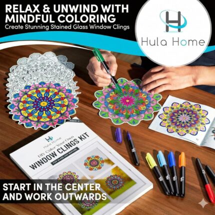 Hula Home Stained Glass Mandala Art Kit – DIY Window Clings with Markers, 10 Suncatchers – Perfect Hobby for Adults, Kids, Teens & Seniors – Ideal Gift for Beginners, Women & Elderly