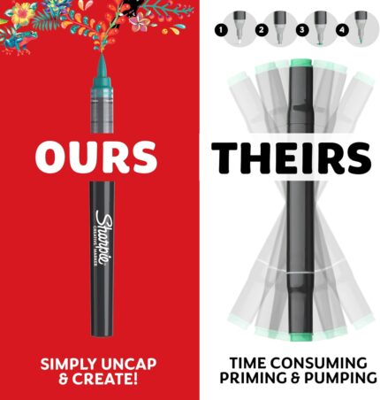 Sharpie Creative Markers, Water-Based Acrylic, Brush Tip, Assorted Colors, 12 Count – Arts & Crafts, Kids Activity, School Classroom; Works on Paper, Metal, Wood, Ceramic, Glass, Rock, Canvas