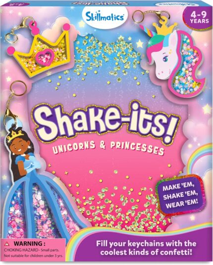Skillmatics Art & Craft Activity – Shake-its, Unicorns & Princesses, DIY Glitter Craft Kit with Keychains, Creative Travel Toys, Fun Party Favors, Birthday Gifts for Girls & Boys Ages 4, 5, 6, 7, 8, 9